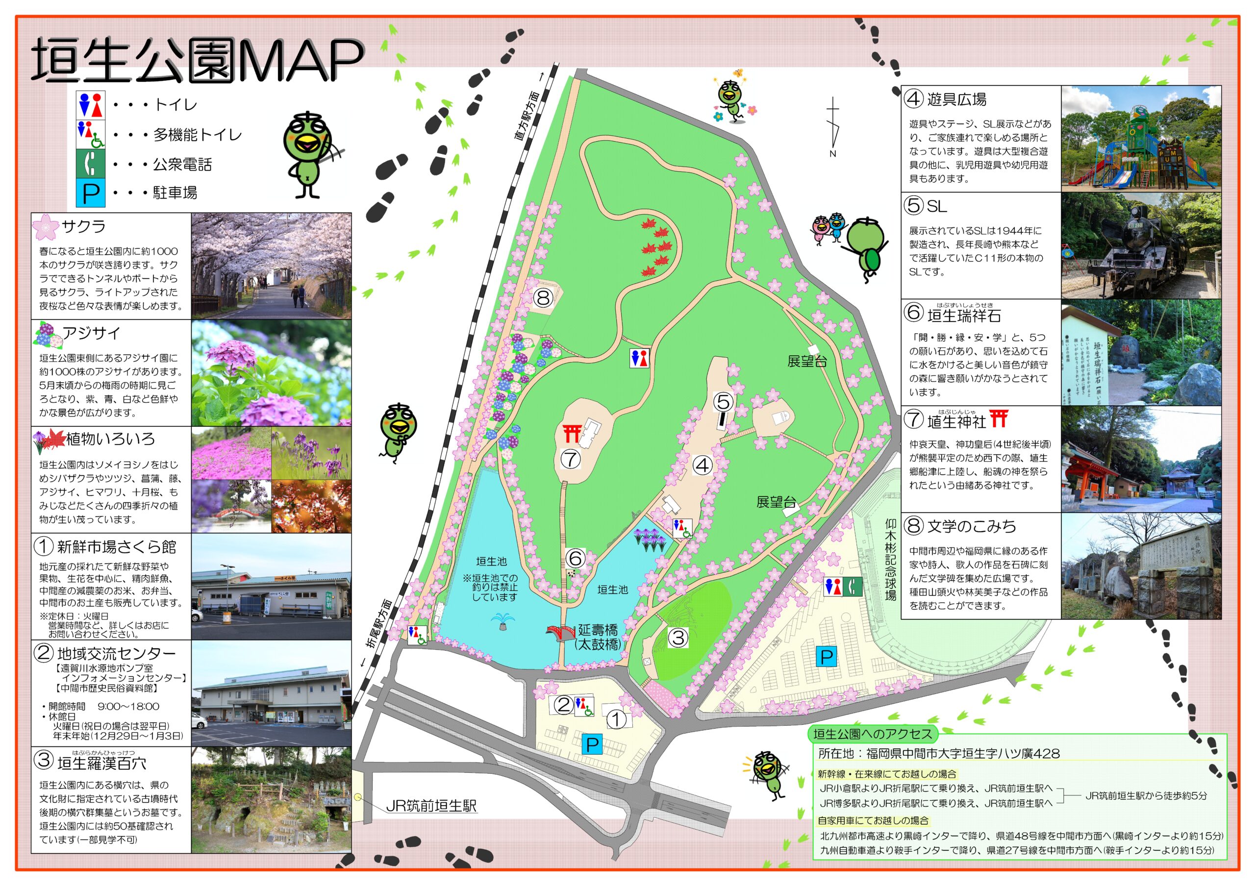 アクセスはJR筑前垣生駅から徒歩約5分と非常に便利で、無料駐車場(約210台前後)も用意されています。